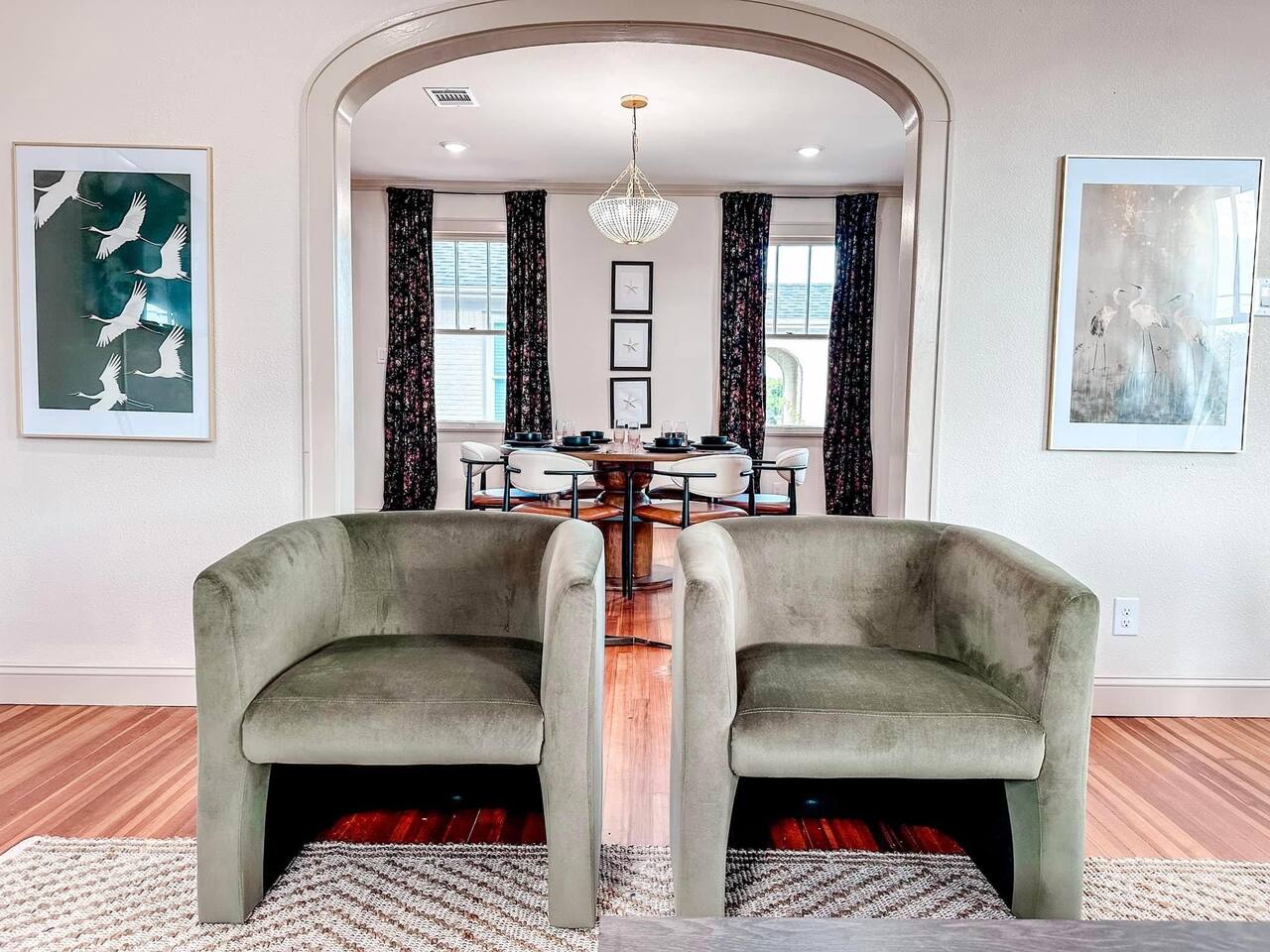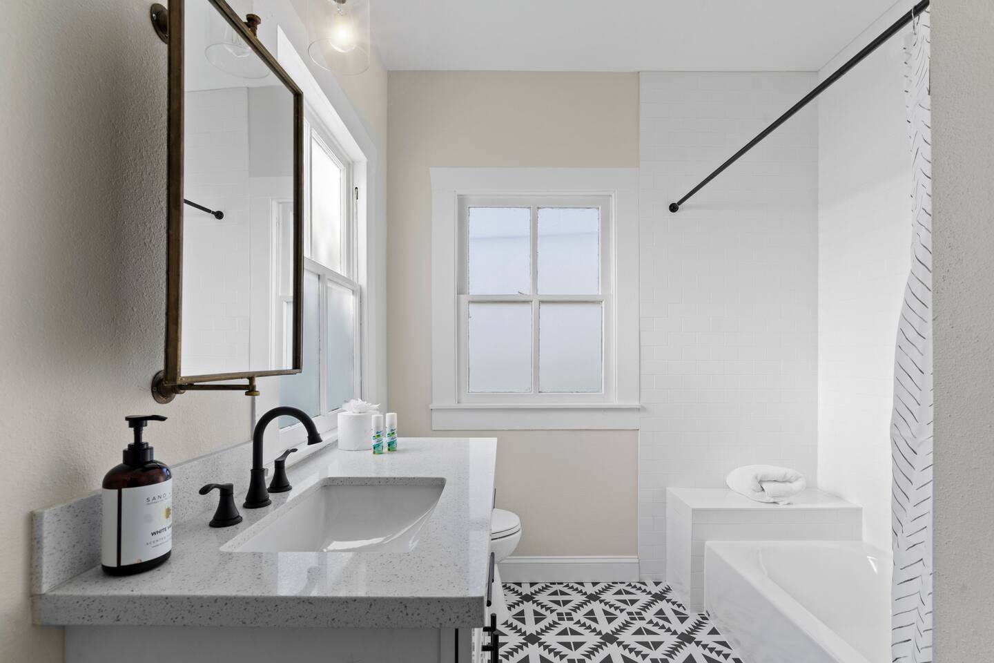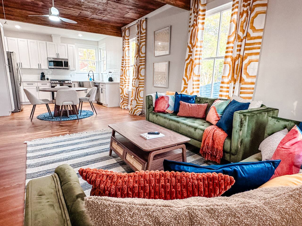 Accommodation: - Main House: 3 bedrooms, 2.5 bathrooms Primary suite with a King bed - Carriage House: Spacious 2 bedrooms, 2 bathrooms - Additional Sleeping Options: Total of 6 queen beds plus a deluxe queen air mattress Amenities: - Kitchens: Two full-size kitchens, one in each house - Laundry: Two washer/dryer towers for convenience Outdoor Courtyard Highlights: - Mural: Eye-catching, hand-painted artwork - Hot Tub & Sauna: Relaxing amenities for guests to unwind - Fire Pit: Perfect for cozy gatherings - String Lights: Adds a warm, inviting ambiance for evening enjoyment - Outdoor Cooking & Dining: Grill for BBQs, sun loungers, and a large sectional couch - Turf Area: Comfortable and versatile outdoor space This property is designed for large groups to enjoy a blend of comfort, convenience, and unique style!