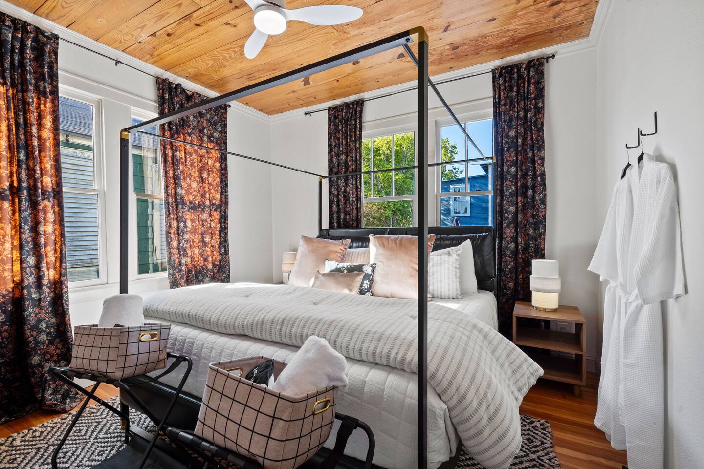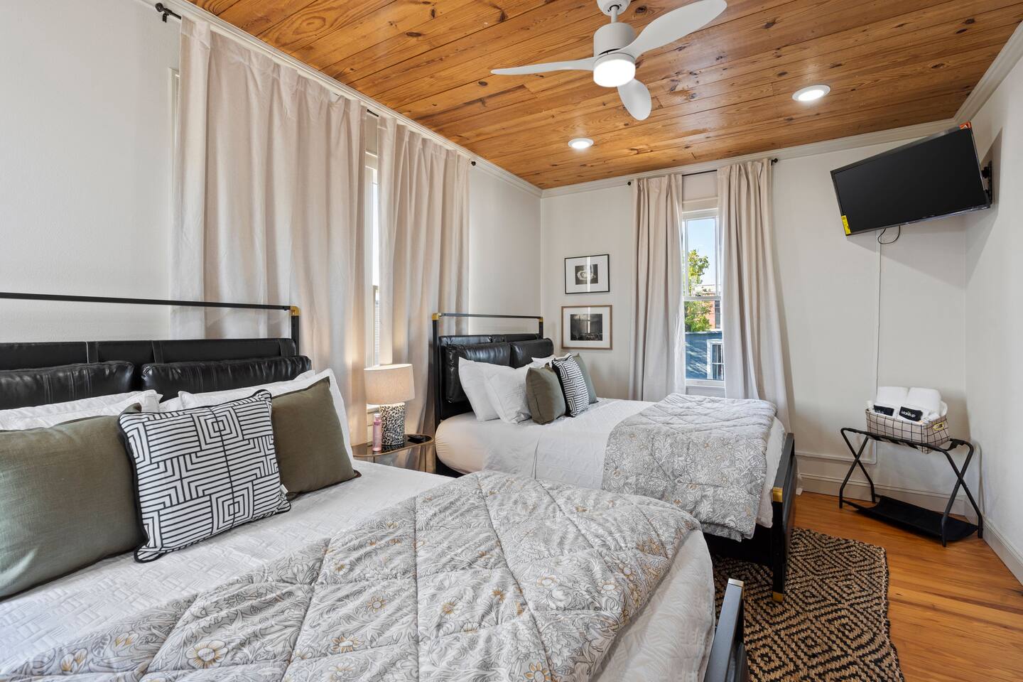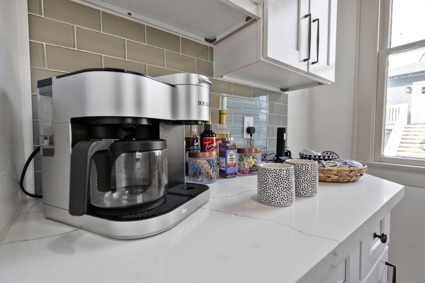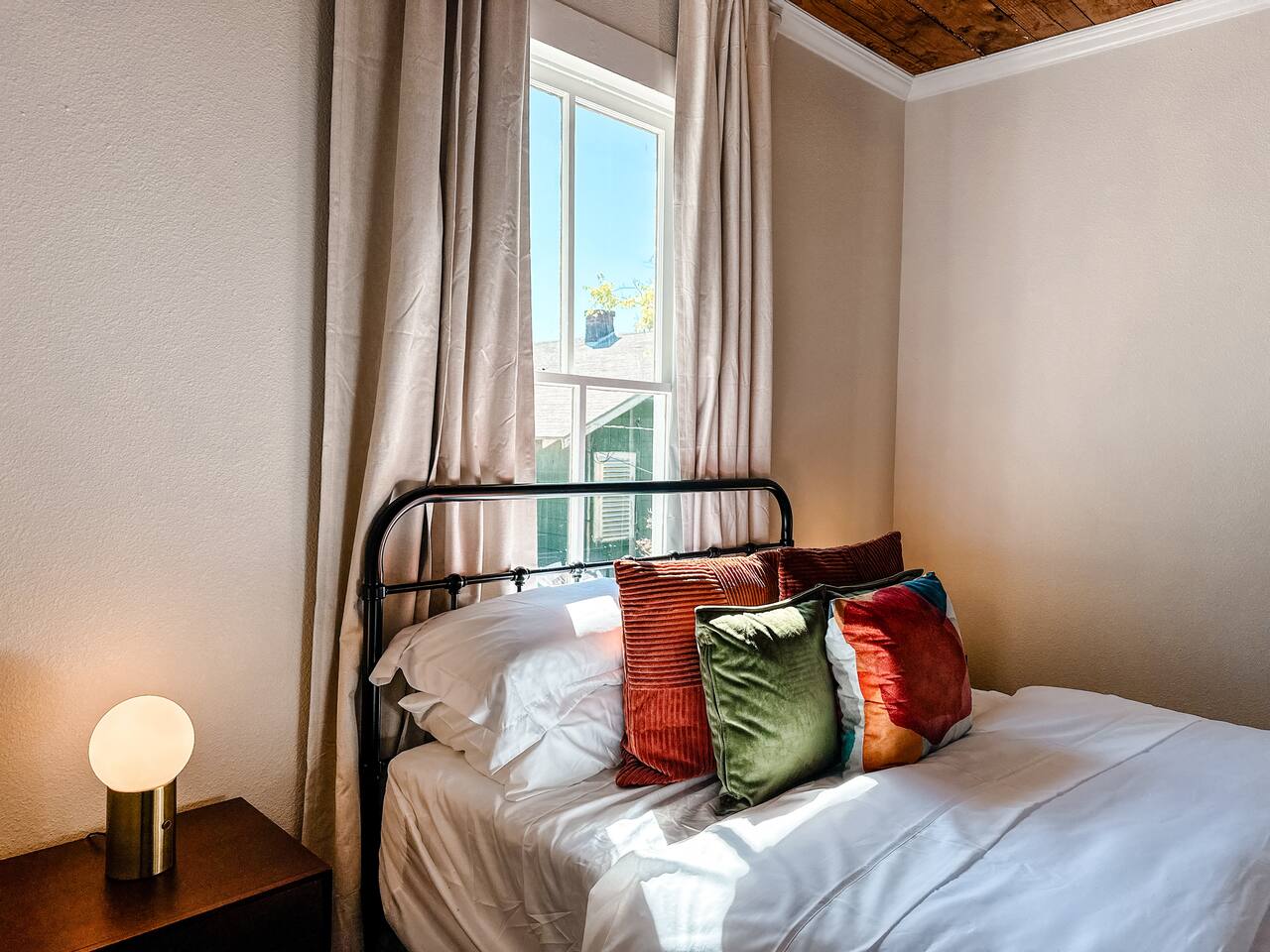 Accommodation: - Main House: 3 bedrooms, 2.5 bathrooms Primary suite with a King bed - Carriage House: Spacious 2 bedrooms, 2 bathrooms - Additional Sleeping Options: Total of 6 queen beds plus a deluxe queen air mattress Amenities: - Kitchens: Two full-size kitchens, one in each house - Laundry: Two washer/dryer towers for convenience Outdoor Courtyard Highlights: - Mural: Eye-catching, hand-painted artwork - Hot Tub & Sauna: Relaxing amenities for guests to unwind - Fire Pit: Perfect for cozy gatherings - String Lights: Adds a warm, inviting ambiance for evening enjoyment - Outdoor Cooking & Dining: Grill for BBQs, sun loungers, and a large sectional couch - Turf Area: Comfortable and versatile outdoor space This property is designed for large groups to enjoy a blend of comfort, convenience, and unique style!