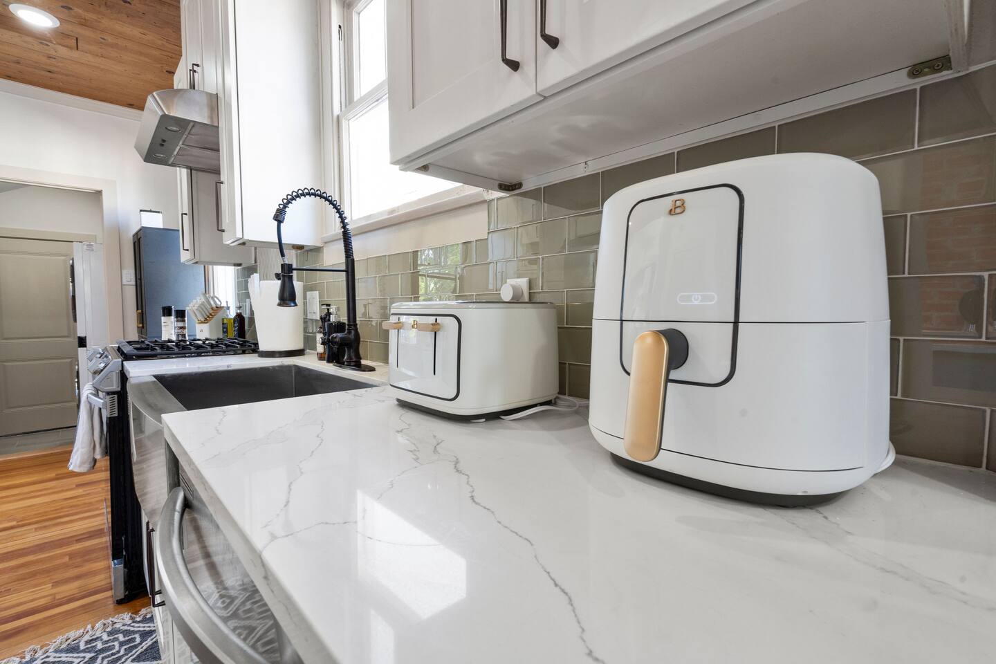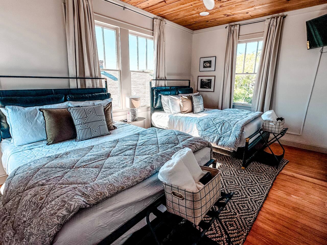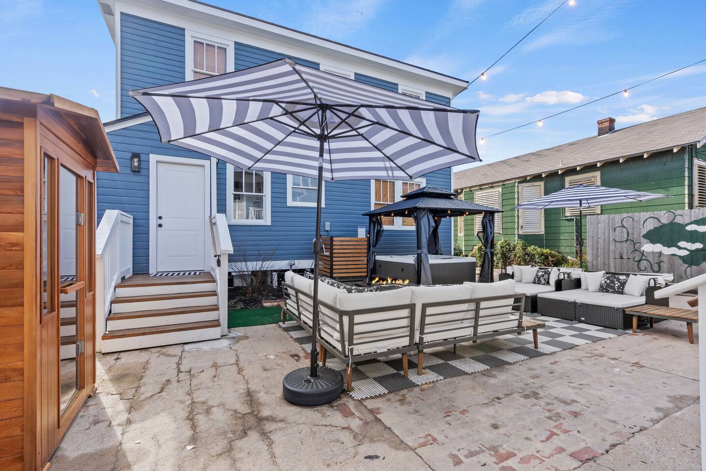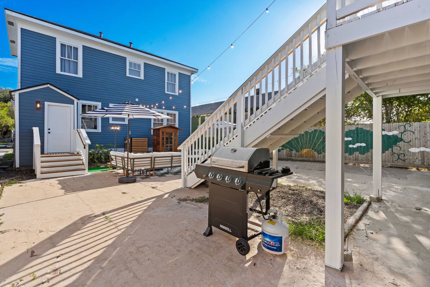 Your Galveston Home Away From Home Welcome to your private oasis in the heart of Galveston — where historic charm meets modern comfort. Thoughtfully designed for connection, relaxation, and unforgettable memories. Perfect for families, girls’ trips, wellness weekends, and special celebrations. Why Guests Love This Home! ★ Private hot tub ★ Private sauna ★ Cozy fire pit ★ Stunning hand-painted mural (perfect photo backdrop!) ★ Sun loungers + spacious outdoor seating ★ Fully stocked kitchen ★ Gourmet coffee bar ★ Gas grill for easy group dinners ★ King suite + 4 Queen beds ★ Washer & dryer ★ Luxury linens ★ Keyless entry ★ Fast Wi-Fi Every detail is designed to make your stay comfortable, stylish, and stress-free. Sleeping Arrangements (Spacious & Group-Friendly) Comfortable sleeping for larger families and groups: Primary Suite: King bed Private ensuite bathroom Elegant and relaxing retreat space Bedroom Two Two Queen beds Bedroom Three: Two Queen beds Bathrooms: 2 Full Bathrooms 1 Half Bath With room for everyone to spread out, this layout is ideal for multi-family stays, bridal parties, and weekend celebrations. The Courtyard Experience Step into a beautifully designed courtyard that blends relaxation and fun. While the courtyard is shared with the Carriage House guests, the hot tub and sauna are exclusively yours during your stay — ensuring privacy and comfort. Enjoy: Private hot tub Private sauna Fire pit for cozy evenings Outdoor dining area Gas BBQ grill This space was designed for connection — morning coffee, evening wine, laughter under the lights. Perfect For: Girls’ trips Family vacations Birthday celebrations Beach getaways Bridal parties Wellness retreats Reunions Long weekends