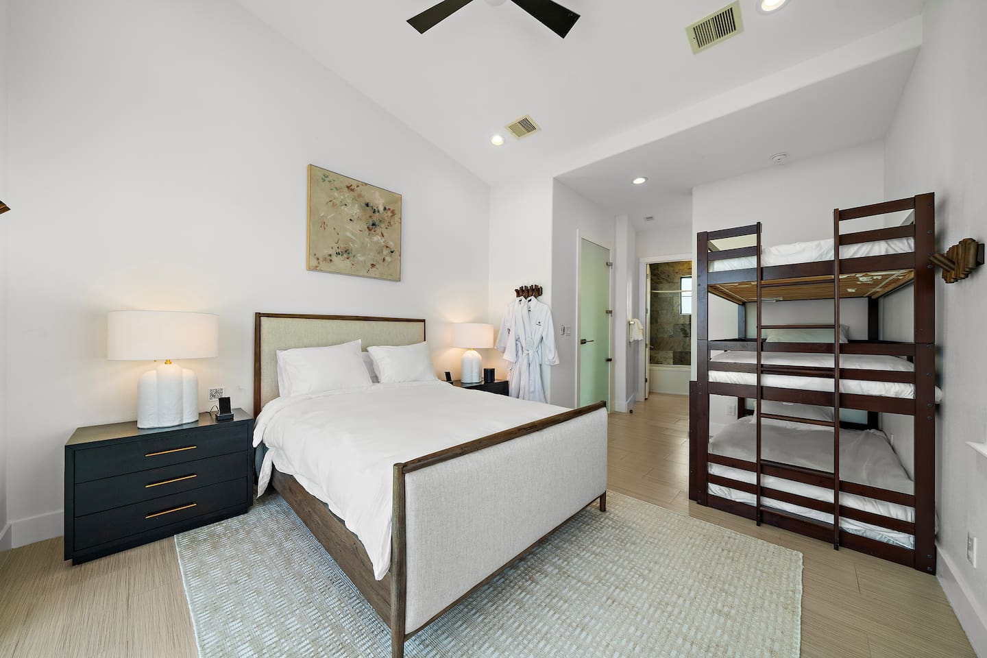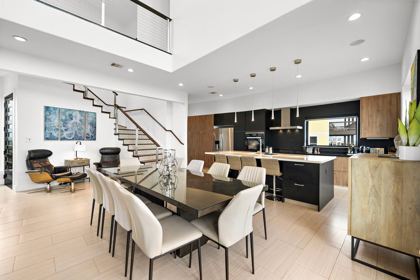 This luxury home is bright, spacious, and thoughtfully designed with no expense spared. Floor-to-ceiling windows flood the home with natural light and showcase panoramic ocean views. The primary suite features a spa-like bathroom with a six-head steam shower and a deep soaking tub overlooking the Gulf—perfect for unwinding after a day on the beach. Each of the three bedrooms includes a private en-suite bath and its own deck, offering every guest a personal retreat. The open loft includes a fold-out sofa, plus an additional full bath and there is a half bath off the kitchen—making it easy to accommodate your group comfortably. Outdoor Living This home was made for coastal living. ✔ Expansive main-level and ground-level decks ✔ Outdoor dining & lounge seating ✔ Private boardwalk straight to the beach ✔ Fenced yard ✔ Covered patio ✔ Outdoor shower ✔ Fish cleaning station ✔ Hot tub We also provide beach chairs, umbrellas, 3 boogie boards, and a small collection of beach toys for your convenience. Kitchen & Entertaining The gourmet chef’s kitchen features: ✔ Double Miele ovens ✔ Large induction cooktop ✔ Fully stocked cookware & utensils ✔ Plenty of dinnerware & glassware ✔ Oversized island with seating for 6 Dimmable LED lighting and a built-in sound system throughout the main living space and outdoor decks allow you to set the perfect vibe—whether it’s an elegant dinner party or a relaxed night in. Sleeping Arrangements This home is designed for luxury, comfort, and spaciousness—not maximum occupancy. Additional sleeping is available with provided floor mattresses if needed. Other Things to Note • The nearest large grocery store is approximately 20 miles away • A small local market is about 10 minutes away • A convenience store is just a few minutes from the home • We recommend stocking up before arrival