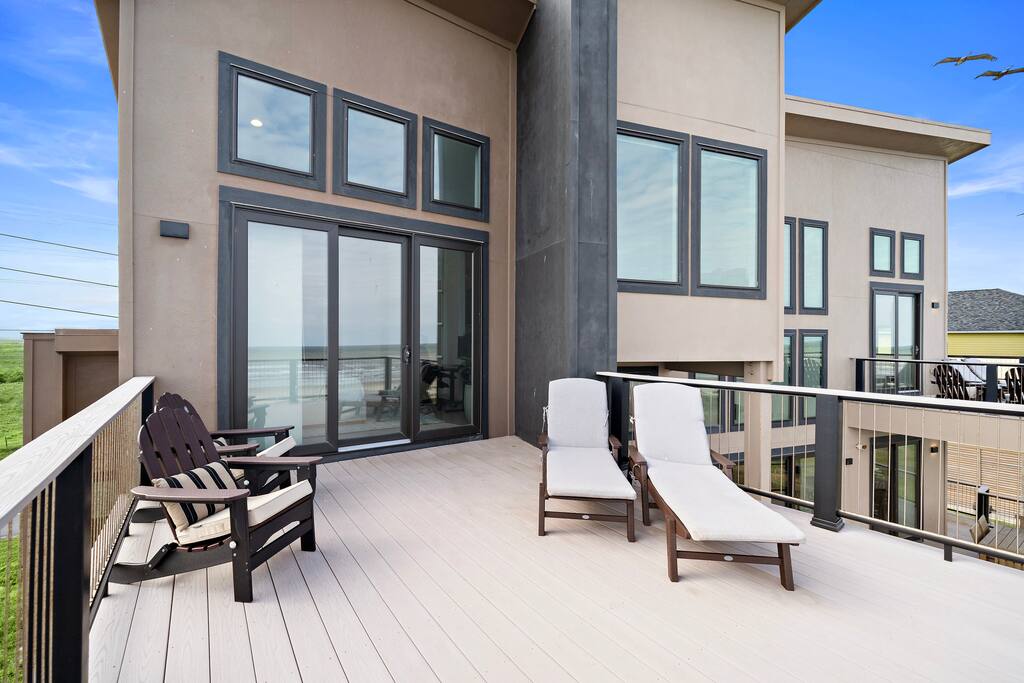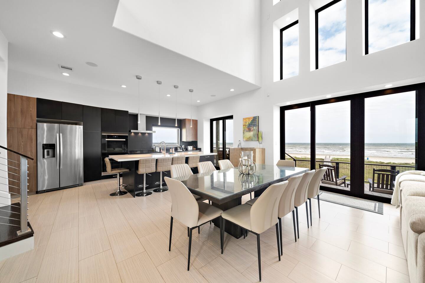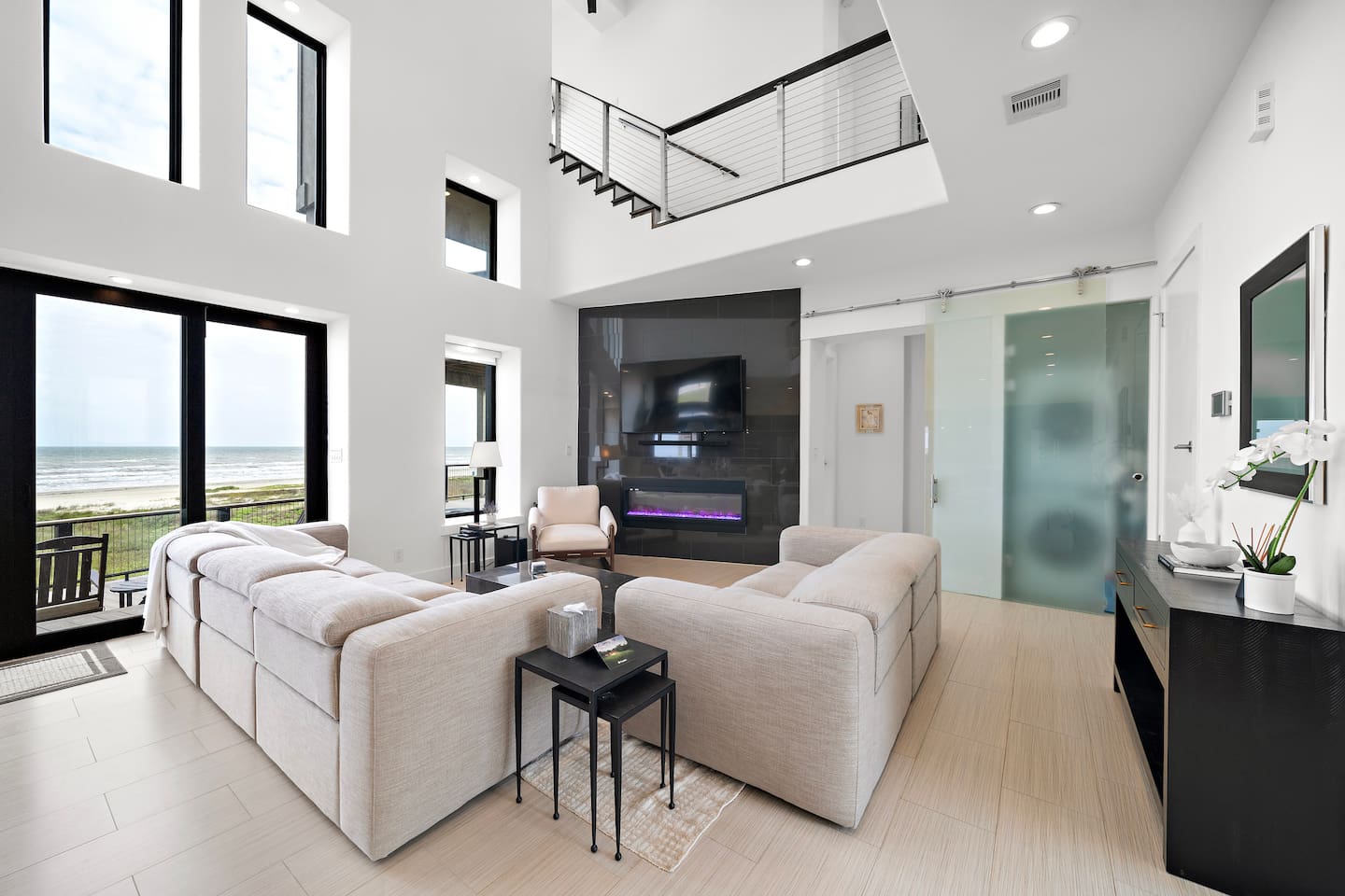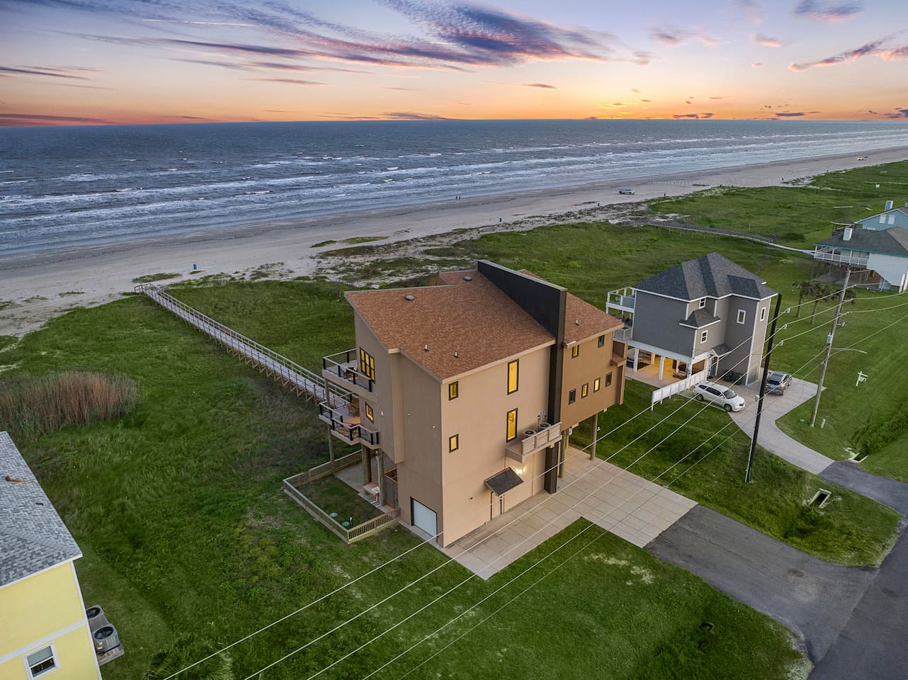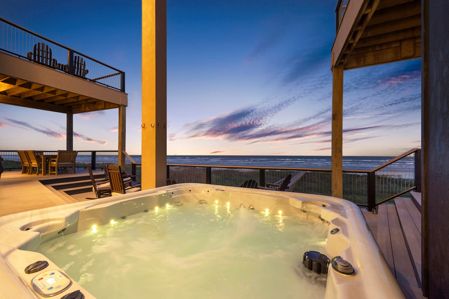 Experience luxury beachfront living in this modern 3,200 sq ft oceanfront retreat on the quiet west end of Galveston Island. Featuring 3 private bedroom suites with en-suite baths and private decks, plus a loft, this home is perfect for relaxing coastal getaways. Enjoy premium amenities including a hot tub, spa-style steam shower, high-end Miele appliances, and smart TVs throughout. Seasonal vehicle restrictions create a peaceful, secluded beach escape.
