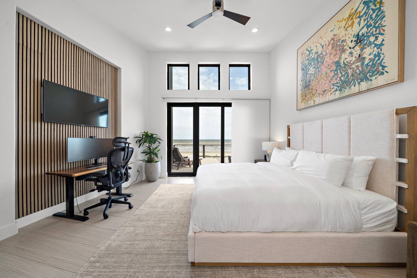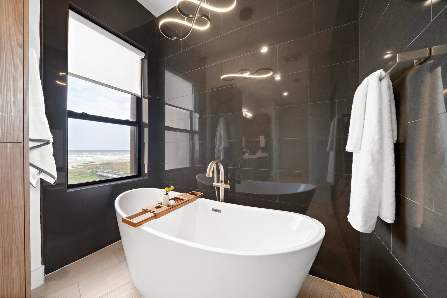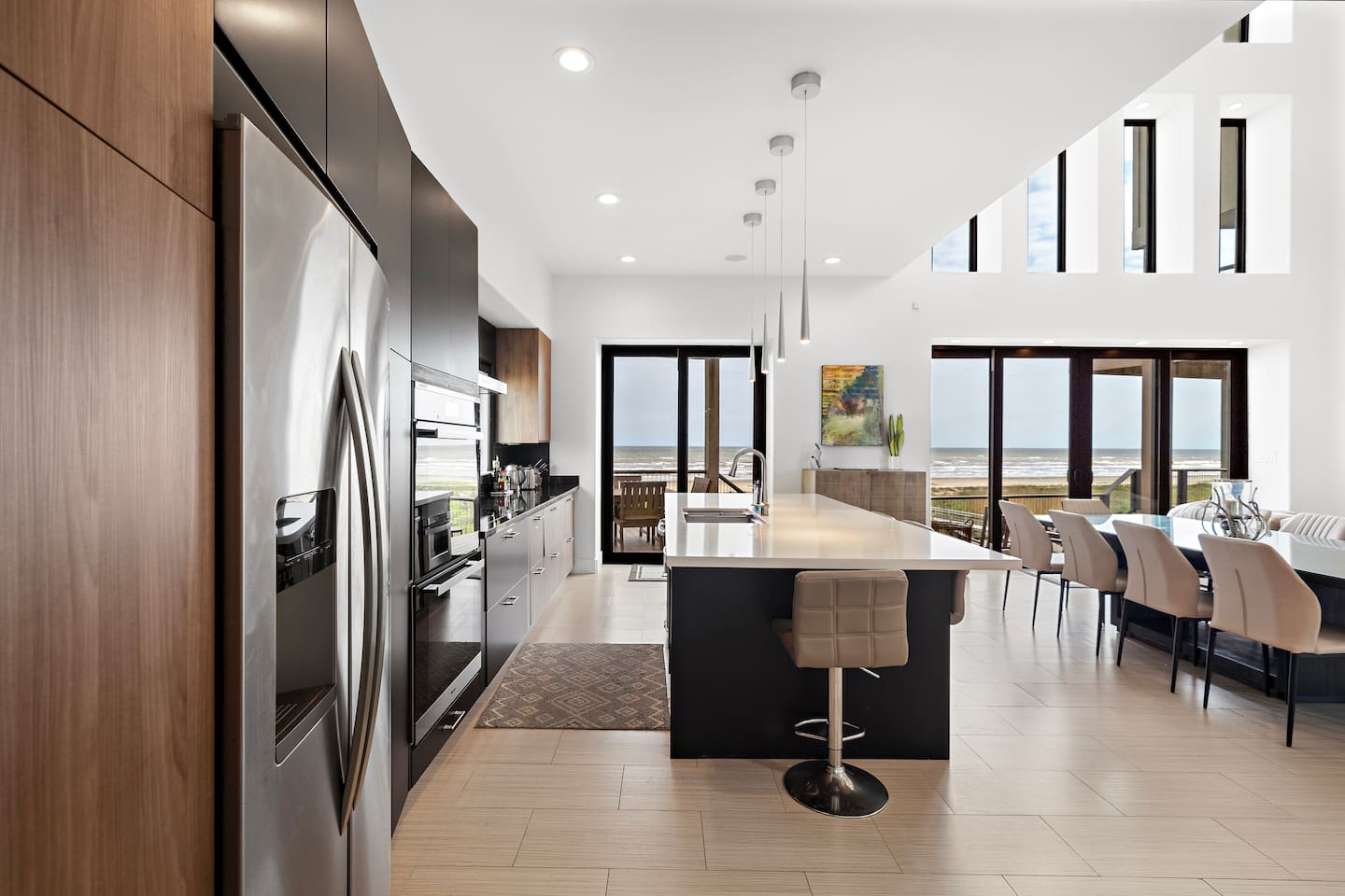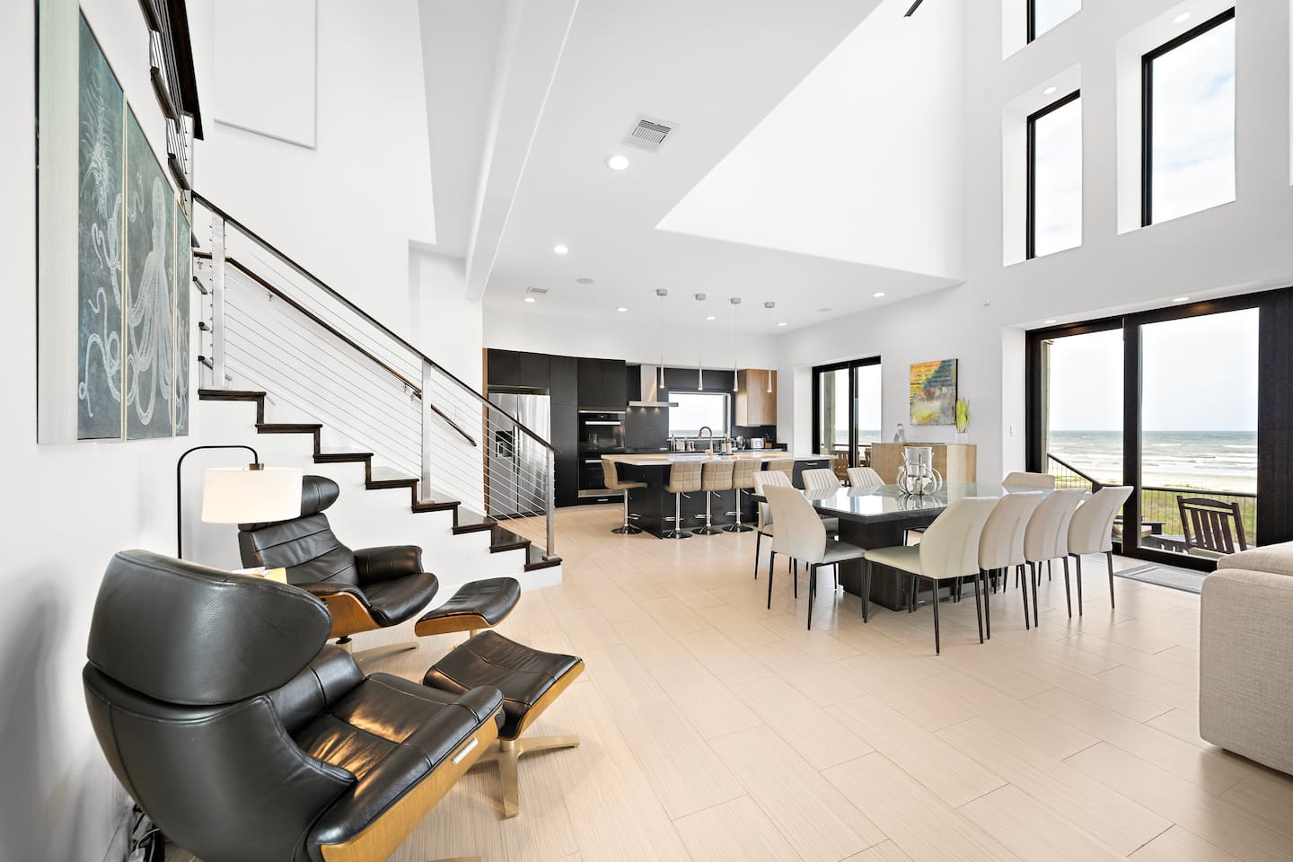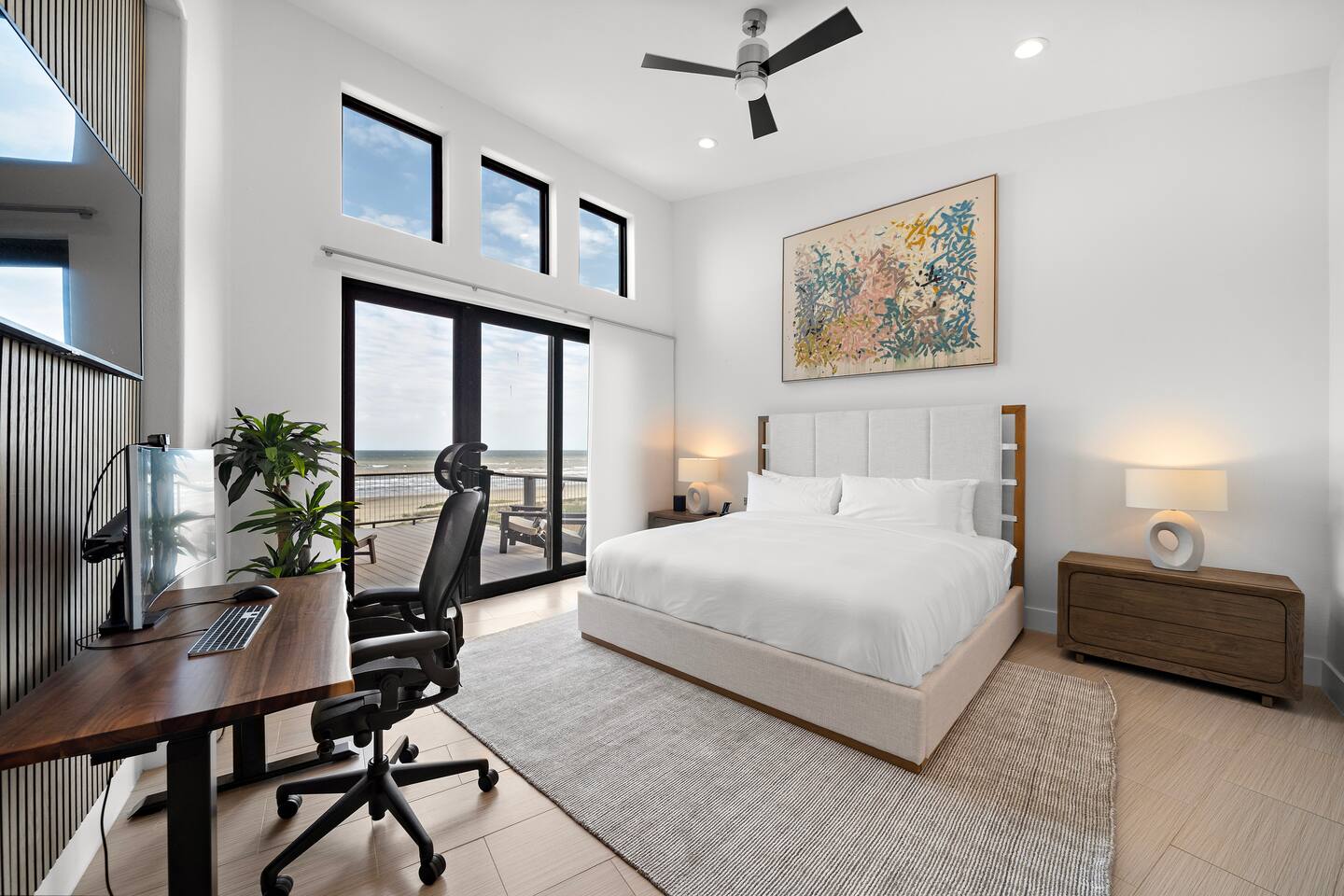 Experience luxury beachfront living in this modern 3,200 sq ft oceanfront retreat on the quiet west end of Galveston Island. Featuring 3 private bedroom suites with en-suite baths and private decks, plus a loft, this home is perfect for relaxing coastal getaways. Enjoy premium amenities including a hot tub, spa-style steam shower, high-end Miele appliances, and smart TVs throughout. Seasonal vehicle restrictions create a peaceful, secluded beach escape.
