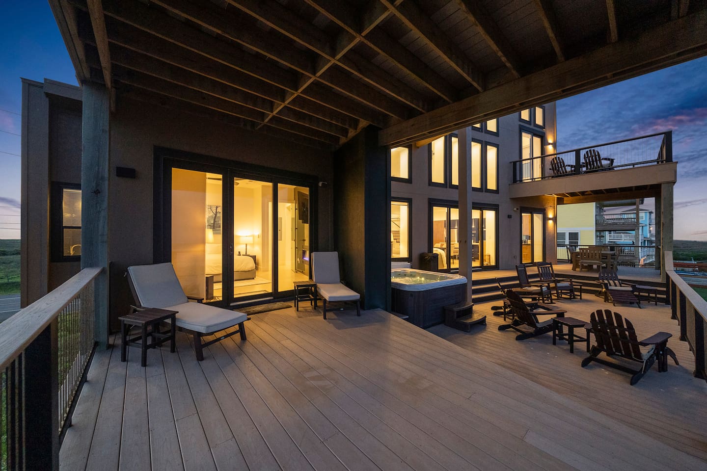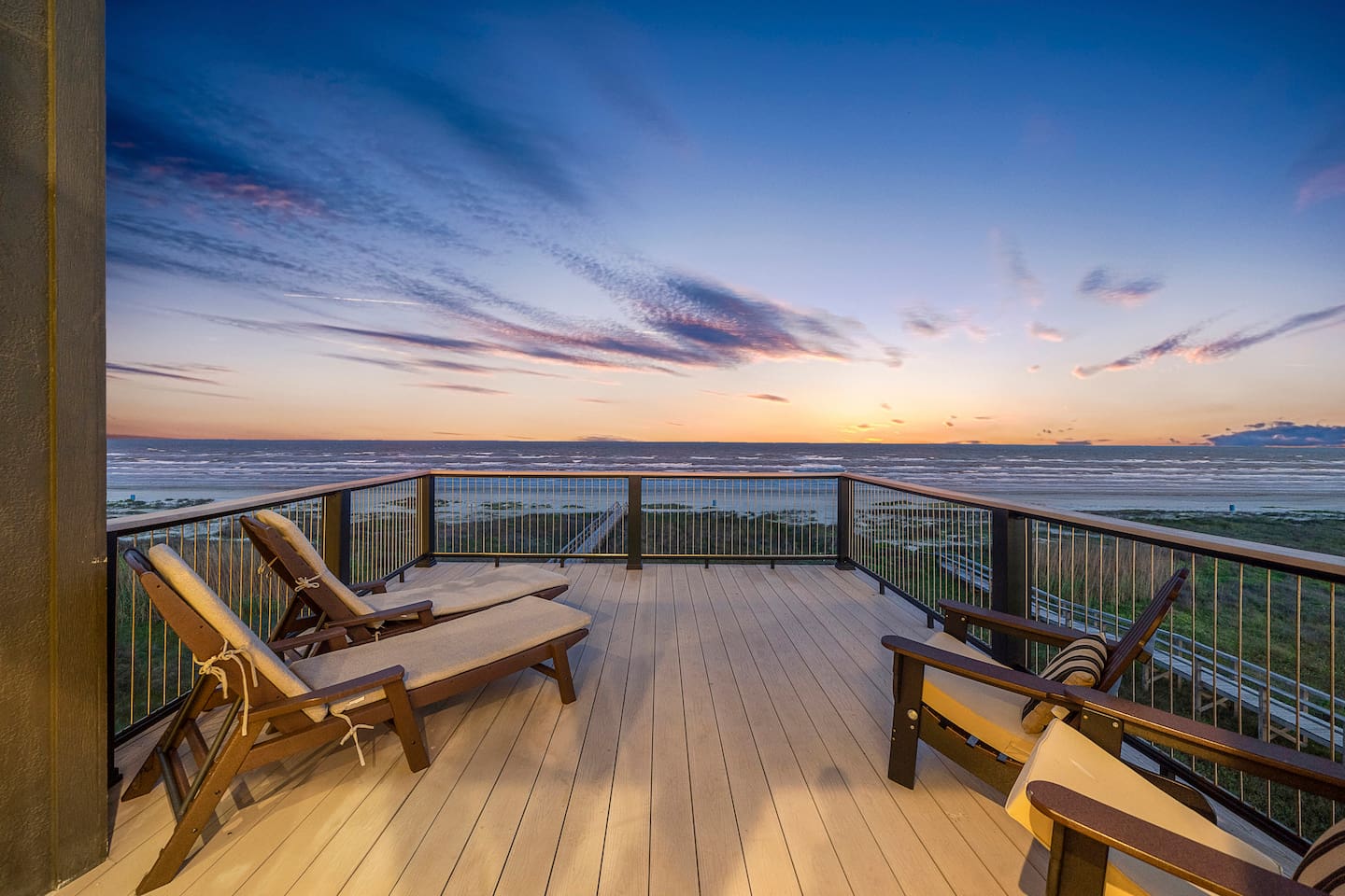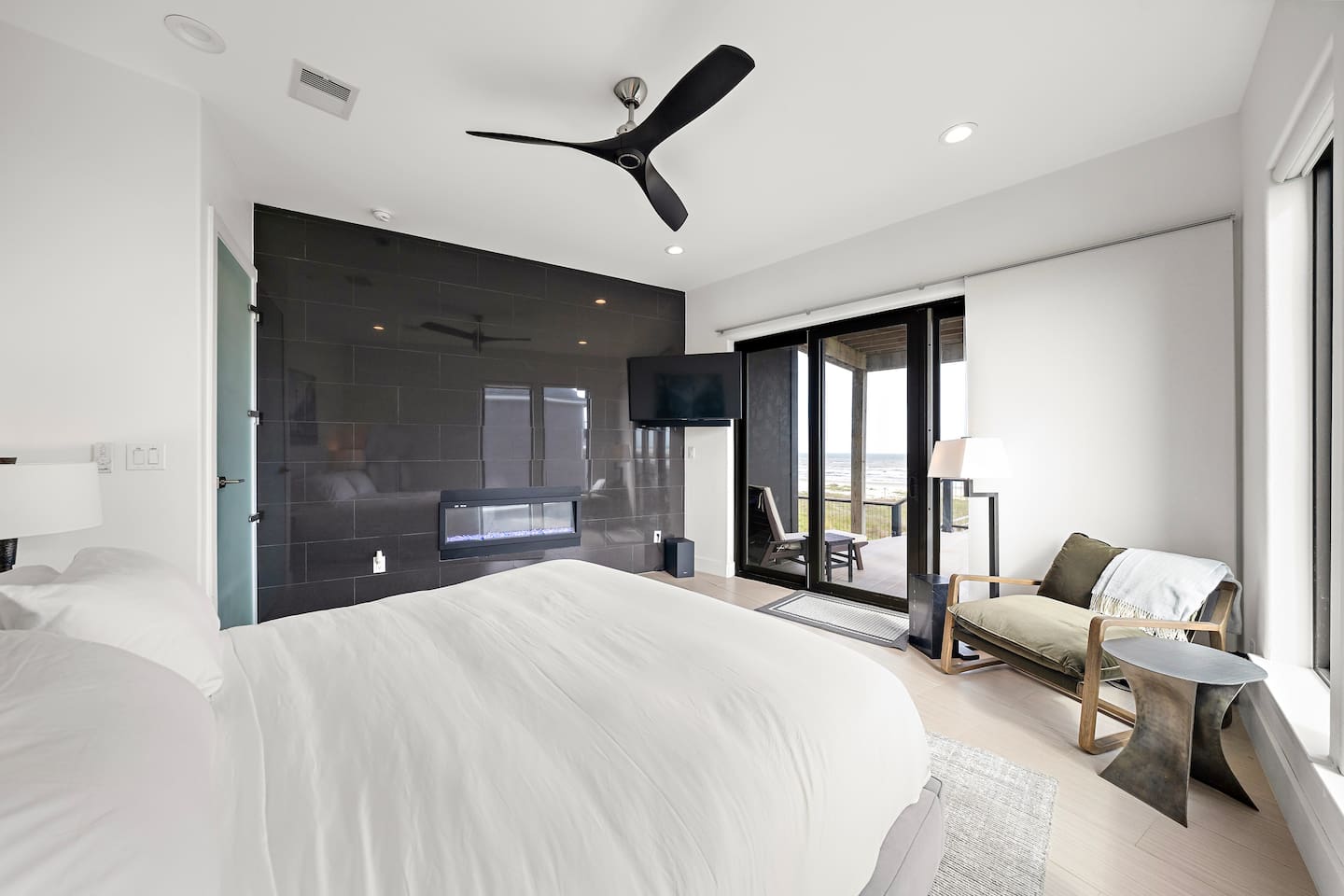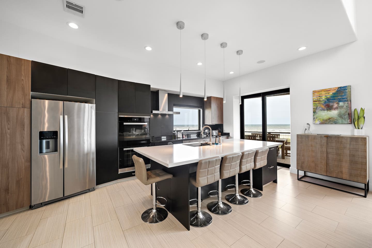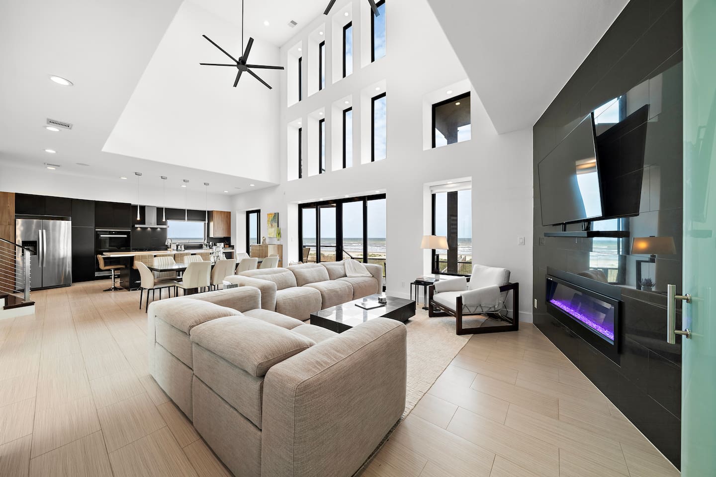 Experience luxury beachfront living in this modern 3,200 sq ft oceanfront retreat on the quiet west end of Galveston Island. Featuring 3 private bedroom suites with en-suite baths and private decks, plus a loft, this home is perfect for relaxing coastal getaways. Enjoy premium amenities including a hot tub, spa-style steam shower, high-end Miele appliances, and smart TVs throughout. Seasonal vehicle restrictions create a peaceful, secluded beach escape.