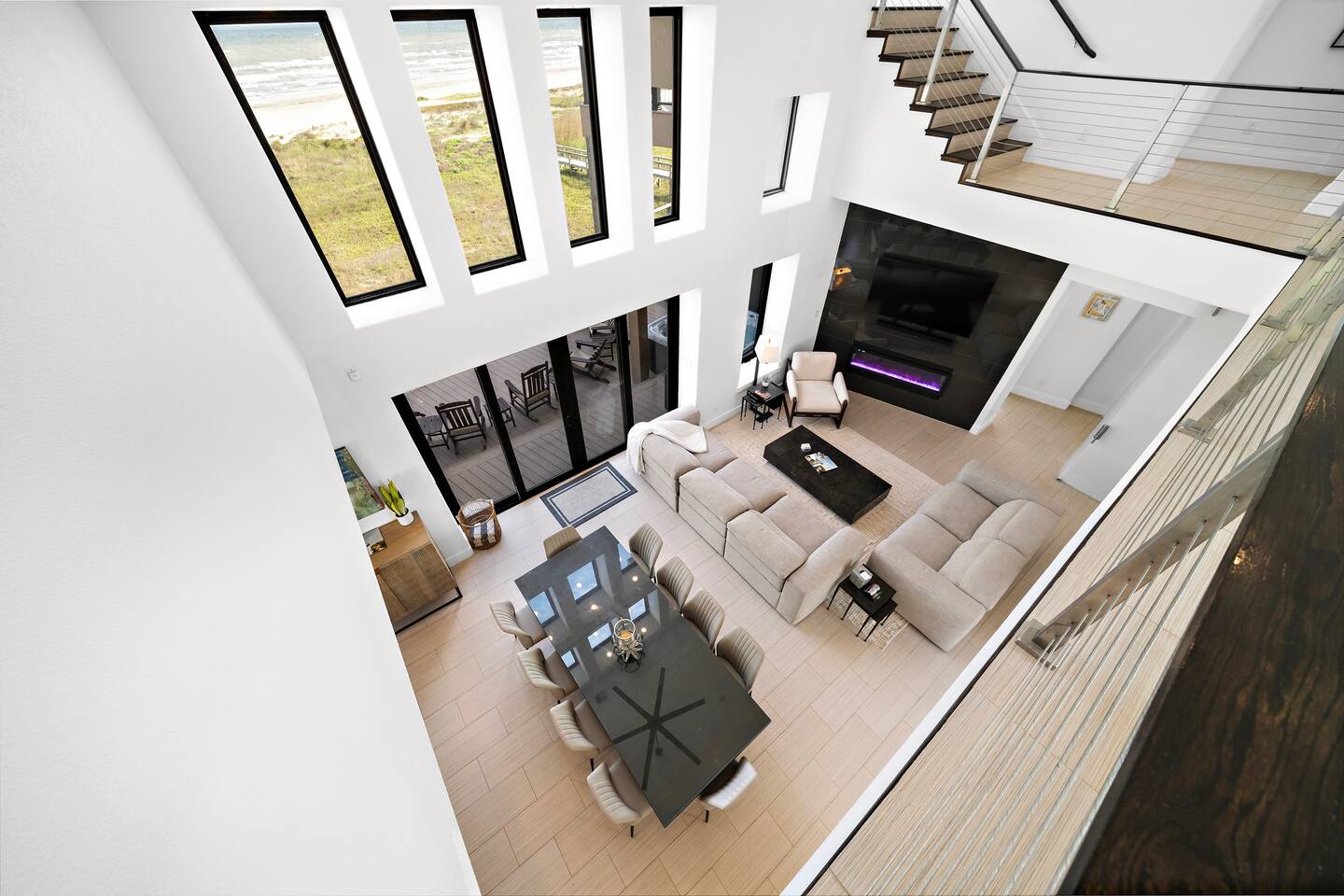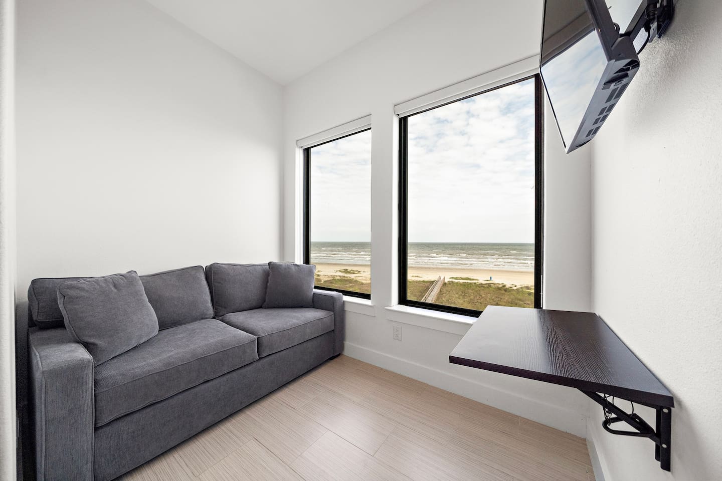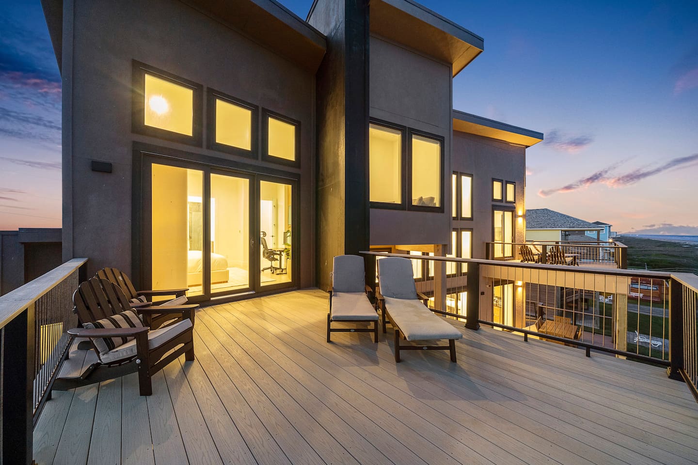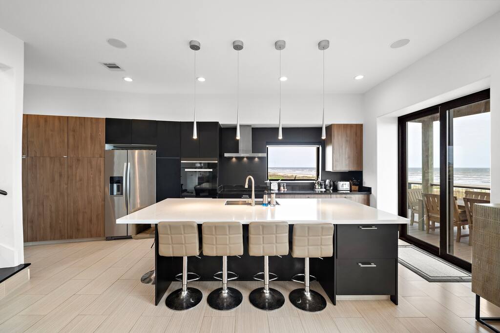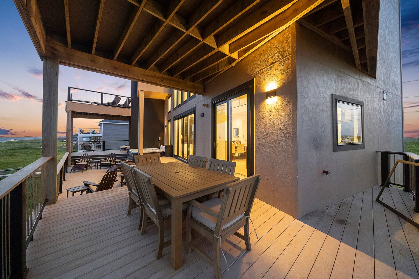 Experience luxury beachfront living in this modern 3,200 sq ft oceanfront retreat on the quiet west end of Galveston Island. Featuring 3 private bedroom suites with en-suite baths and private decks, plus a loft, this home is perfect for relaxing coastal getaways. Enjoy premium amenities including a hot tub, spa-style steam shower, high-end Miele appliances, and smart TVs throughout. Seasonal vehicle restrictions create a peaceful, secluded beach escape.
