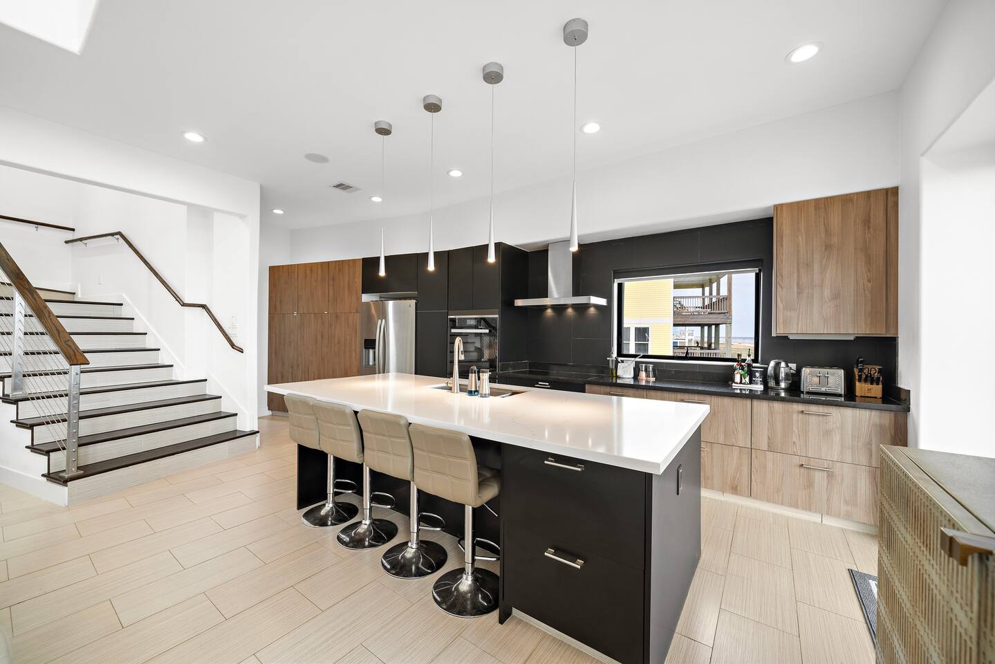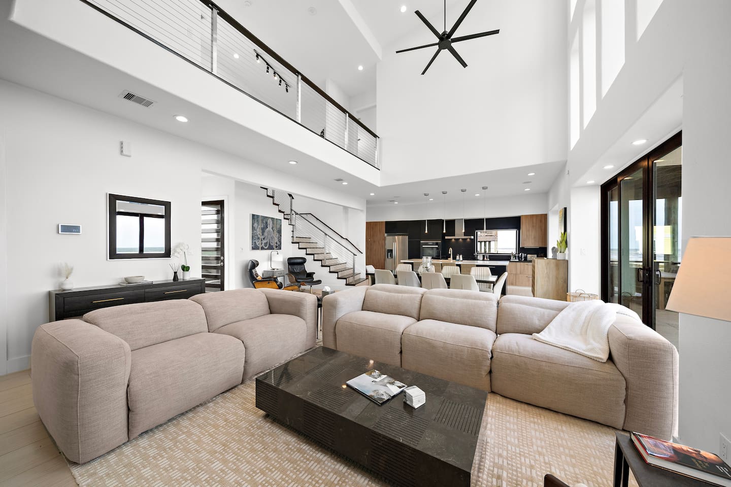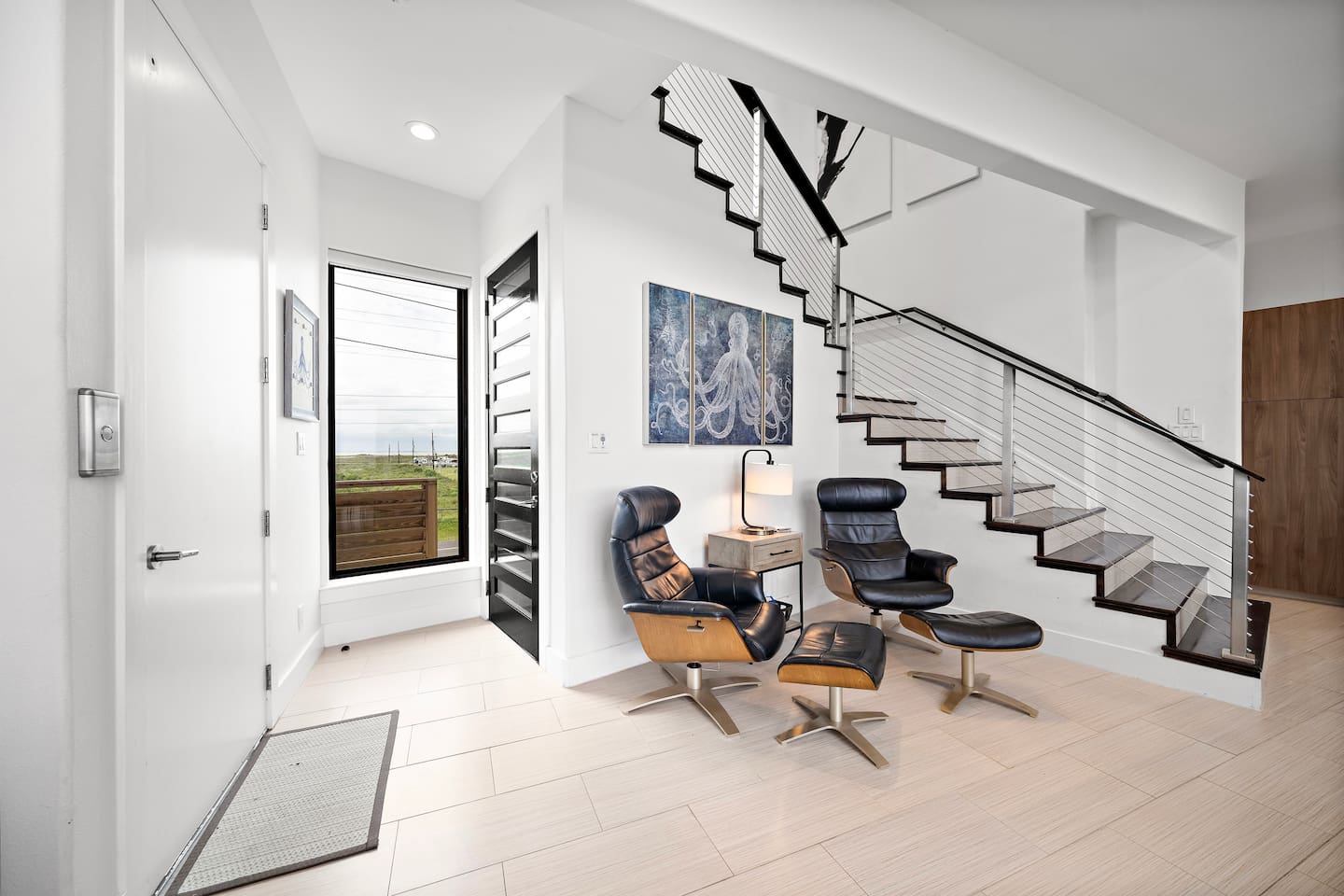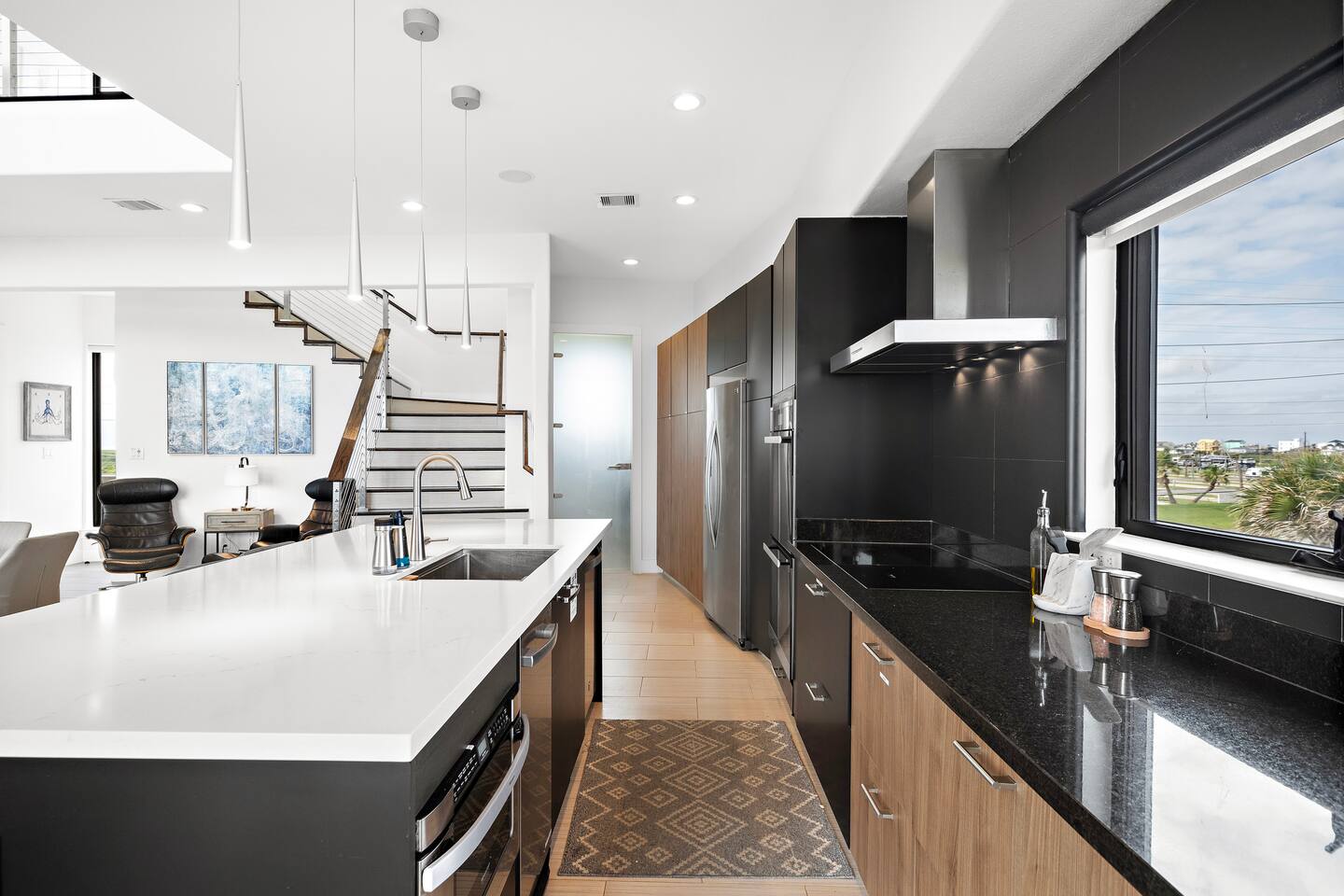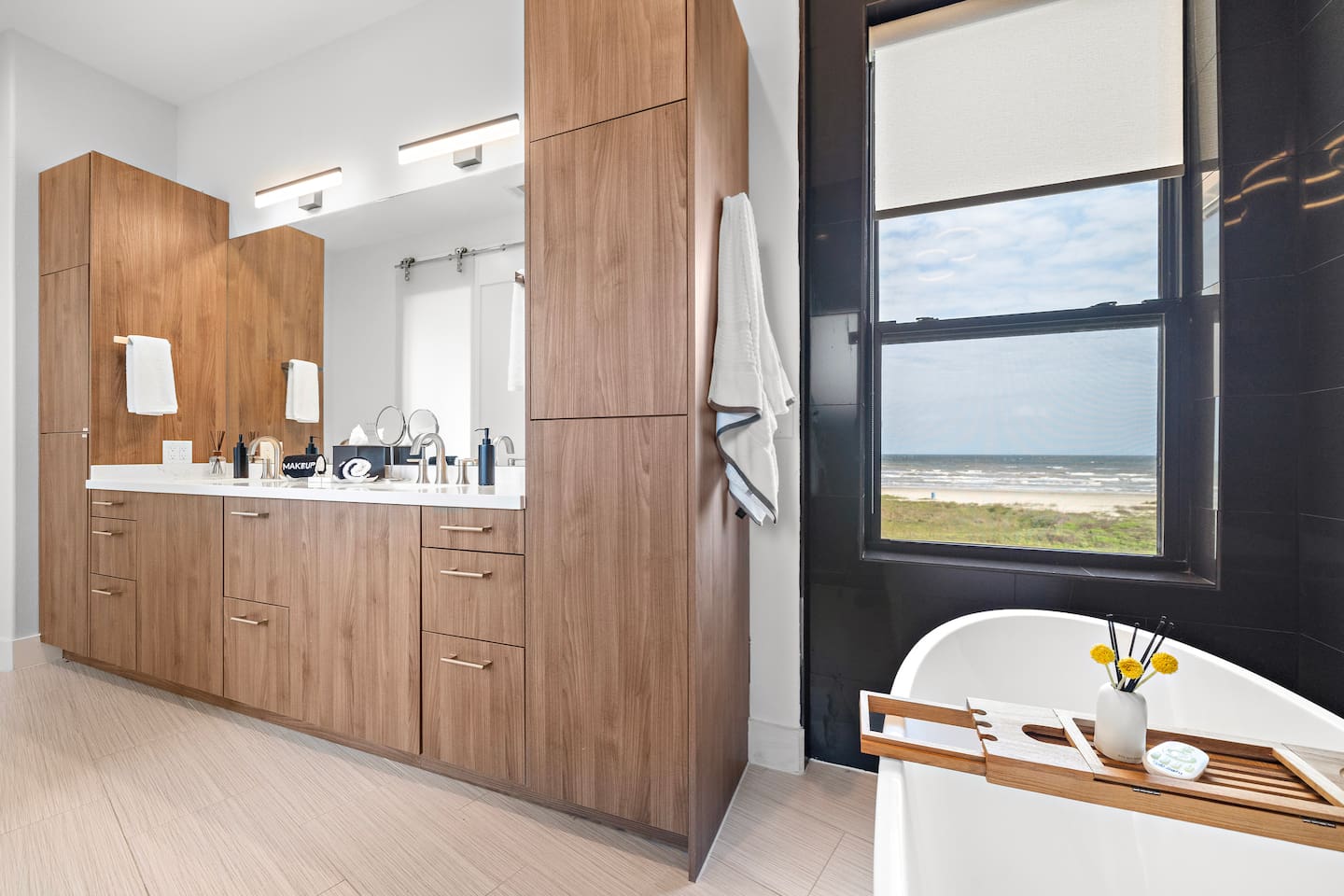 Experience luxury beachfront living in this modern 3,200 sq ft oceanfront retreat on the quiet west end of Galveston Island. Featuring 3 private bedroom suites with en-suite baths and private decks, plus a loft, this home is perfect for relaxing coastal getaways. Enjoy premium amenities including a hot tub, spa-style steam shower, high-end Miele appliances, and smart TVs throughout. Seasonal vehicle restrictions create a peaceful, secluded beach escape.