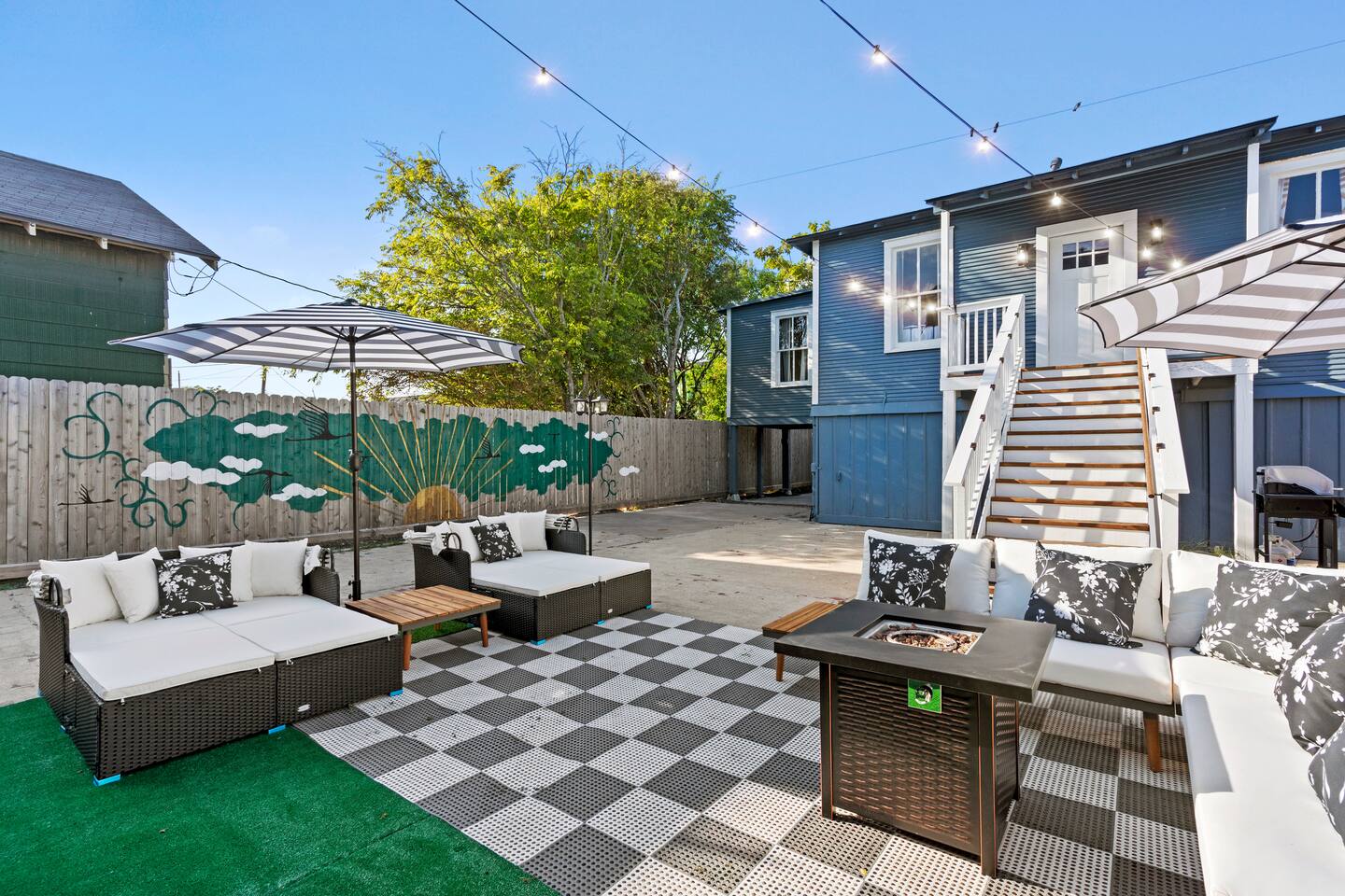 Your arrival is simple and seamless with keyless entry. You will have a dedicated off-street parking spot in the driveway under the carport. You are invited to enjoy the shared courtyard, a perfect spot to unwind. This space includes a BBQ grill for cookouts and a fire pit for relaxing evenings. Please note that the hot tub and sauna are reserved exclusively for guests of the main house (which is listed separately). The Neighborhood Nestled in a prime location, our guesthouse puts the best of Galveston at your fingertips. You're just a pleasant 10-minute walk or a quick 2-minute drive from the Seawall and the beach. The island's top-rated restaurants, unique shops, and popular attractions are all just minutes away, allowing you to fully immerse yourself in the local culture. Getting Around The home's central location makes getting around a breeze. Enjoy a leisurely walk to the beach, or take a short drive to explore other parts of the island. The provided off-street parking ensures you always have a secure place for your vehicle.